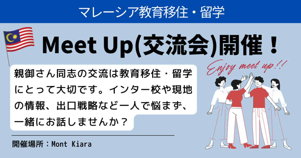 マレーシア教育移住に関して、親御さん同志の交流を深めるMeet Up(交流会)を開催しております。